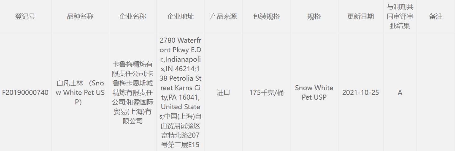 | Snow White Pet USP 白凡士林 (本产品已通过国家药监局CDE登记,登记号:F20190000740) |